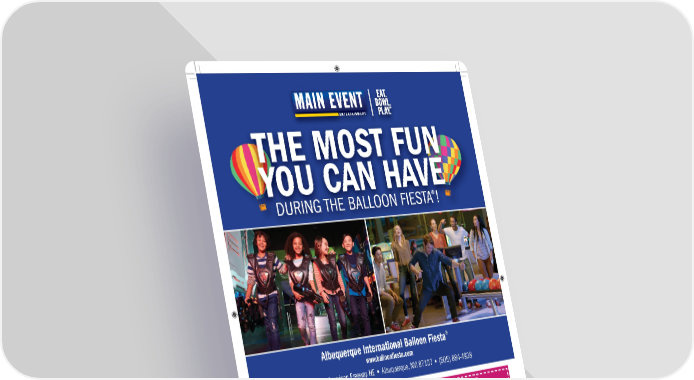 THE MOST FUN YOU CAN HAVE ® DURING THE BALLOON FIESTA! ® Albuquerque International Balloon Fiesta www.balloonfiesta.com 4040 Pan American Freeway NE • Albuquerque, NM 87107 • (505) 884-4928 ALL-YOU-CAN-PLAY PASS $ FREE 20 IN ARCADE GAME PLAY $ 95 WITH PURCHASE OF $20 IN ARCADE GAME PLAY! 20per guest • • BOWLING BILLIARDS LASER TAG & MORE! Offer valid every day from open to close. Limited time only. Limited number of packages available. Not valid on arcade games. Promotion may end at any time without notice. Certain restrictions apply. Price does not include bowling shoes or tax. Activity time LIMIT ONE COUPON PER GUEST PER VISIT. This offer may not be transferred or forwarded. This offer cannot be combined with any limited to space availability. Not valid on food or beverage purchases. Main Event reserves the right to place up to five people per other offers or redeemed online. Arcade play will be added to a FUNcard as bonus value and is valid for arcade game play only. lane. Lane time may be limited to one hour, based on availability. Restrictions apply. Not valid toward group reservations. Valid day of Cannot be used as cash or payment towards other activities, food, beverage, group events or refunded for cash (unless required purchase ONLY. Guests under the age of 18 must be accompanied by a parent or guardian over the age of 25 in the Billiards area. by law). Any resale of the FUNcard will render it void and subject to forfeiture. Main Event is not responsible for lost, stolen or Laser Tag and Gravity Ropes have a height requirement of 48” to play. Rock Climbing has a height requirement of 42” to play. damaged FUNcard. Valid at all Main Event locations. Valid thru the end of the day 10/14/19. Price does not include tax. Not valid with any other offer. Certain restrictions apply. Main Event reserves the right to reserve one lane per 5 people. Does not include arcade game play. Not valid on birthday parties. Offer valid 10/1/19–10/14/19. No reservations required. ABQ19_PRT_MagazineAd_8.375x10.875_Mech.indd 1 7/8/19 1:12 PM