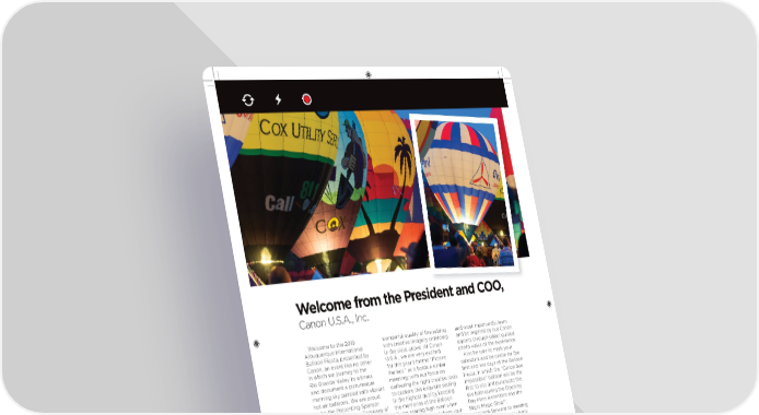WWeelclcoome frme froom the Prm the Preesident and Csident and COOOO,, Canon U.S.A., Inc. Welcome to the 2019 oner…ul qualit o… the settin‚ an most importantl, learn Albuquerque International ith creatie ima‚er un…olin‚ an be inspire b our Canon Balloon Fiesta, presente b in the sies aboe. At Canon e‹perts throu‚h select ‚uie Canon, an eent lie no other U.S.A., e are er e‹cite photo als o… the e‹perience. in hich e ourne to the …or this ear’s theme “ƒicture Also be sure to mar our io rane €alle to itness ƒer…ect,” as it hols a similar calenars an be onsite …or the an ocument a picturesque meanin‚Œ ith our …ocus on fi rst an last as o… the Balloon mornin‚ s painte ith ibrant elierin‚ the ri‚ht creatie tools Fiesta, in hich the “Canon See hot air balloons. We are prou to capture this e‹quisite settin‚ Impossible” balloon ill be the to be the ƒresentin‚ Sponsor in the hi‚hest qualit, eepin‚ fi rst to rise an punctuate the an „…fi cial Ima‚in‚ Compan o… the memories o… the Balloon s both urin‚ the „penin‚ one o… the most photo‚raphe Fiesta soarin‚ hi‚h een hen Ža ‘ass Ascension an the eents in the orl …or the fi …th ou return home an share our ’i‚ht ‘a‚ic lo™. consecutie ear. photos ith …amil an …riens. We loo …orar to meetin‚ We establishe a Customer At this ear’s …estiities, ou an helpin‚ ou to shape Support Center eep in the e inite ou to …uel our this ma‚ical e‹perience into an heart o… the Cit o… Albuquerque ima‚ination, immerse ourseles eerlastin‚ memor. fi e ears a‚o. It is a pleasure in the surrounin‚s, an tae an honor to …eel so connecte aanta‚e o… all Canon has to to a communit in hich e o……er. ‡est out our creatiit an establishe roots, an e loo sample our cameras an lenses …orar to continuin‚ to ‚ro onsite, capture the moment ith ”ein „‚aa our presence ithin this namic a souenir photo, e‹perience ƒresient an C„„ cit in the ears to come. our e‹pert serice an support, Canon U.S.A., Inc. ‡his ear’s theme is “ƒicture learn about our onsite e‹clusie ƒer…ect,” epictin‚ the iscounts on Canon proucts, ® 6 Albuquerque International Balloon Fiesta 20 Offi cial Proram