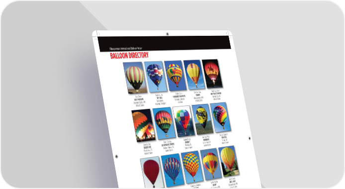 Albuuerue €nternational Balloon ˆiesta® BALLOON DIRECTORY See, Glenn Sehers, os Seibel, „ach Shelha†, Shai Sheran, Carol RACY MADAME SKY STAR SUNDANCE BALLOONS SANDIA THE FINAL FRONTIER Elephant Butte, NM Breendonk Belont, ntario Albuuerue, NM ansas Citƒ, M United States Anterp, Beliu Canada United States United States Sherrill, Dan Short, Dennis Skach, Bruce Skelton, Me Sklute, enneth BUCKET LIST CHAMPAGNE COWBOY ZROZRO7 MAHARANI FRACTALS Manchaca, TX Broken Arro, …ichita, S Castle ‡ock, C Tepe, A„ United States United States United States United States United States Skocdopole, Cliff Sart, Chris Satana, Bernard Sith, athƒ Sith, Neal REDDEE ‘N WILLING DREAM CATCHER III EMINENCE LEVITY FIRST LIGHT Condor, Alberta untinton, €N El ‚aso, TX Albuuerue, NM Albuuerue, NM Canada United States United States United States United States Soffera, anet Spanier, Mark Spear, eff Suires, ‡ick Standefer, …aƒne VACATION OH ZONE RAINBOW RYDERS HIGHER DESIRE AIR TOY Albuuerue, NM ‚eachtree Citƒ, GA Sonoa, CA ‡io ‡ancho, NM €talƒ, TX United States United States United States United States United States Albuquerque International Balloon Fiesta 2019 Offi cial Program 54 ®