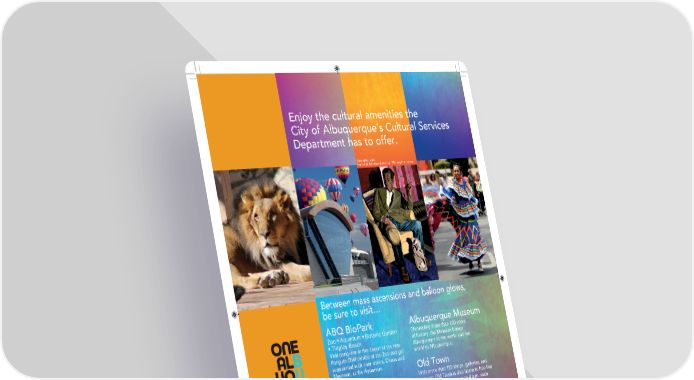 Enjoy the cultural amenities the City of Albuquerque’s Cultural Services Department has to offer. Edward Gonzales Portrait of Patrocinio Barela, ca. 1981, acrylic on canvas Between mass ascensions and balloon glows, be sure to visit… ABQ BioPark Albuquerque Museum Zoo • Aquarium • Botanic Garden Chronicling more than 600 years • Tingley Beach of history, the Museum brings Visit penguins in the desert at the new Albuquerque to the world and the Penguin Chill exhibit at the Zoo and get world to Albuquerque. acquainted with river otters, Chaos and Mayhem, at the Aquarium. Old Town Albuquerque With more than 150 shops, galleries, and eateries, Old Town is also home to free live Balloon Museum entertainment from noon to 4 p.m. each Experience the history, science, day Friday, October 4 to Sunday, October sport, and art of ballooning and other 13 at Plaza Vieja Gazebo in the heart of innovative forms of flight at the gateway to Albuquerque. exploration, discovery, and achievement. ¡Explora! Explora is a new kind of learning place, providing real experiences with real things that put people’s learning in their own hands. www.CultureABQ.com • 505.768.3556
