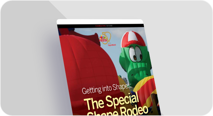 2022 Balloon Fiesta Program Page 145 Page 147CELEBRATING 50 YEARS Getting into Shapes: The Special Shape Rodeo BY MARK SULLIVAN TT A W Y A R O: T PHO ® 140 Albuquerque International Balloon Fiesta