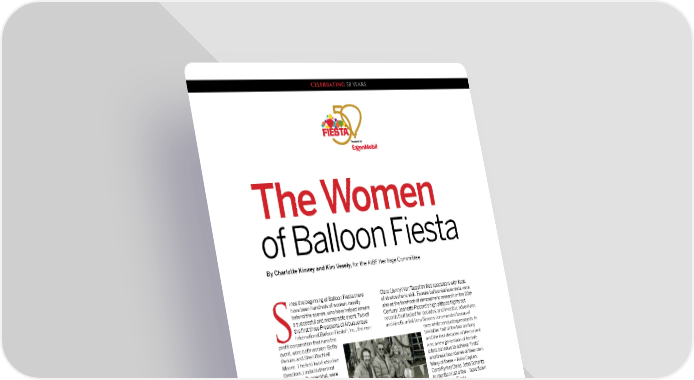 CELEBRATING 50 YEARS The Women of Balloon Fiesta By Charlotte Kinney and Kim Vesely, for the AIBF Heritage Committee ince the beginning of Balloon Fiesta there Clara (Jenny) Van Tassel thrilled spectators with feats have been hundreds of women, mostly of stratospheric skill. Female balloonist/scientists were behind the scenes, who have helped ensure also at the forefront of atmospheric research in the 20th a successful and memorable event. Two of Century: Jeanette Piccard’s high altitude flights set the first three Presidents of Albuquerque records that lasted for decades; and inventor, adventurer, International Balloon Fiesta®, Inc., the non- and kinetic artist Vera Simons commanded teams of S profit corporation that runs the men while conducting research. In event, were both women: Betty the latter half of the last century Perkins and Sheri Bachtell and the first decades of the current Moore. The first two Executive one, a new generation of female Directors, Linda Rutherford pilots continue to achieve “firsts” and Marge Ruppenthal, were and break boundaries of their own. female, as was Pat Brake, Many of these – Nikki Caplan, the first staff Event Director. Carol Rymer Davis, Jetta Schantz, There have been five female to mention just a few – have flown balloonmeisters (the lead in the Balloon Fiesta. official in charge of flight Men piloted the earliest balloon operations): Pat Brake, Neida flights in New Mexico, beginning Courtney, Neida Courtney- with Park Van Tassel’s flight from Bueno, Charlotte Kinney, downtown Albuquerque in 1883 and Cheryl Lété (now Frost). and the exploits of Stamm and Except for Betty Perkins, all of Blondin in the first decade of the these women are themselves 1900s. After their last gas balloon balloon pilots and flew – as flight in 1909, ballooning didn’t have hundreds of other women, Above: Scientist-artist-aeronaut Vera Simons return to the state until the late including the authors of this and her crew. 1960s, and to Albuquerque until article – in the Balloon Fiesta. Sid Cutter acquired his balloon in While ballooning has always been a male-dominated 1971. After that, it didn’t take long for the ladies – many sport, both internationally and in Albuquerque, female of them the spouses of male balloonists – to figure out aeronauts have always captured the public’s imagination. that women are just as capable of flying balloons as men: The first woman took flight less than a year after the the wind and weather don’t care what gender you are. first men, and brave women such as Jeanne-Genevieve It is believed that pioneering New Mexico aviatrix Labrosse Garnerin, Sophie Blanchard, and (in America) Virginia Cutter, Sid and Bill Cutter's mom, held the first ® 112 Albuquerque International Balloon Fiesta