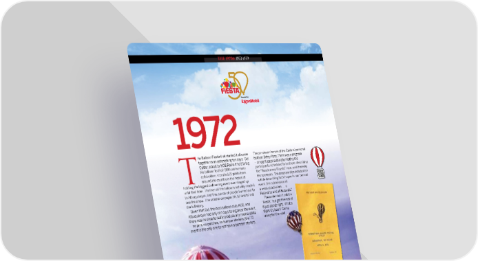 THE 1970s: 1972-1979 11979722 he Balloon Fiesta that started it all came The pin shown here is of the Cutters’ personal together in an astonishing ten days. Sid balloon, Betsy Ross. There was a program Cutter, asked by KOB Radio if he’d bring – an eight-page publication listing the his balloon to their 50th anniversary participants scheduled to be there, describing celebration, recruited 21 pilots from the “Roadrunner/Coyote” race, and thanking Taround the country in the hopes of the sponsors. The program also included an holding the biggest ballooning event ever staged up article describing Sid’s hopes for an “annual until that time. Thirteen of the balloons actually made it event, the culmination of to Albuquerque, and thousands of people turned out to a week of activities . . . a see the show. The articles on pages 36, 52 and 62 tell Festival to end all Festivals.” Festival to end all Festivals.” the full story. The writer didn’t call it a Given that Sid, the local balloon club, KOB, and “Fiesta,” but got the rest of “Fiesta,” but got the rest of Albuquerque had only ten days to organize the event, it just about right. What a there was no time to really produce any memorabilia fl ight it’s been! Come – no pins, no patches, no bumper stickers (the ’72 along for the ride! aaalllooonnnggg fffooorrr ttthhheee rrriiidddeee!!! event is the only one to not have a bumper sticker). ® 34 Albuquerque International Balloon Fiesta