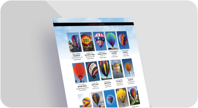 CELEBRATING 50 YEARS Braden, Morgan Bradley, Troy Bramble, Curt Breff eilh, Margaret Brennand, Mike HIGHBISCUS RAINBOW RYDERS STARS & STRIPES SAPPHIRE MILAGRO Lake Havasu City, AZ Albuquerque, NM Provo, UT Victor, ID Tijeras, NM United States United States United States United States United States Bristol, David Broker, Bill Brown, Tom Browning, Derek Browning, Jody ORANGE CRUSH EXCELLENCE TOMFOOLERY THIS END UP TATER TOT Sautee Nacoochee, GA Plano, TX Plainwell, MI Louisville, KY Rio Rancho, NM United States United States United States United States United States Brunner, Pierre Buckner, Jason Buesing, Jeff Buesing, Russ Burdue, Bradley RAINBOW RYDERS HALE-LUCINATIONS RUSS BUSS LITTLE HOPPER RUBIK Yountville, CA Albuquerque, NM Colorado Springs, CO Centennial, CO Whitehouse, OH United States United States United States United States United States Burgess, Zach Burman, Leo Bussey, Bill Butler, Bill Byberg, Bruce RAINBOW RYDERS MONARCHS YEN YANG MONKEY BUSINESS AUTUMN DREAM Ashland, OH Montreal, Québec Longview, TX Alamogordo, NM Bloomfi eld, NJ United States Canada United States United States United States ® 76 Albuquerque International Balloon Fiesta