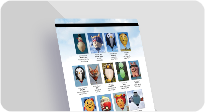Griswold, Peter Haliczer, Jeff Hlebechuk, Kris Hodge, Art MR. WINTER OFF THE WALL PUDDLES DUMA Peachtree City, GA Reno, NV Wasilla, AK The Villages, FL United States United States United States United States Hodge, Jonathan Hoefer, Rudolf Holly, Andrew Hooper, Lee Jaques, Tyler SPLASH FOX TALL STEVE ALIEN PIGASUS Madison Heights, MI Michelbach Gloucestershire Radstock, Somerset Battle Creek, MI United States Germany United Kingdom United Kingdom United States Jones, Derrick Kalousdian, Rubens Kolba, Jon Komadina, Mark TIC TOC FLYING BUS CHIC-I-BOOM STORK Hudsonville, MI São Paulo Crooks, SD Rio Rancho, NM United States Brazil United States United States Lambert, Benoit Lawhorn, Rich Lawton, Jeff Lilzey, Brian MASTER YODA HUMPTY DUMPTY FREDDIE THE FOX CATHY’S HOPE BALLOON Louisville, KY Godalming, Surrey Fall Branch, TN Court-St.-Etienne United States United Kingdom United States Belgium OFFICIAL PROGRAM 149