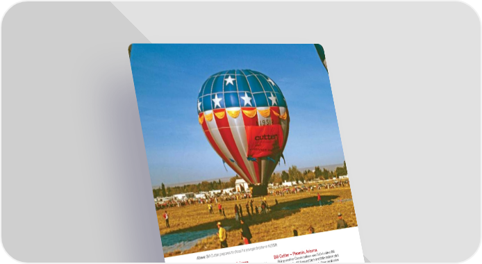 Above: Bill Cutter prepares to chase his younger brother in N1951R. Oscar Kratz – Tucson, Arizona. Bill Cutter – Phoenix, Arizona. Piloting another Coyote balloon was Oscar Kratz. He Flying another Coyote balloon was Sid’s brother Bill. flew a checkered Raven with red and white top, blue Upon request, the FAA issued Sid’s and Bill’s balloon pilot and white bottom. It can be said that he was indirectly licenses in 1962 and 1963, respectively. Their certificates responsible for one of Albuquerque’s first resident hot read “Free Balloon Pilot – Hot Air Balloons Only”. Bill was air balloons. In 1971, Sid wanted to rent a balloon as the an Albuquerque native and an Army veteran (1955- centerpiece for his mother’s birthday celebration at 1957). He had managed Cutter Flying Service in Phoenix Cutter Flying Service. Oscar owned the first certified since 1959. At the first Balloon Fiesta he flew Betsy Raven AX-8, but it was too big for the hangar and his Ross, N1951R, a patriotic red, white, and blue Raven rental fee was too high at $500. Instead, Sid bought a balloon with gold bunting and white stars against a blue new Raven that he planned to use to promote the party. top, and displaying a Cutter Flying Service banner on Thanks to Oscar’s high rent, N1951R became the first the envelope. At his mother’s birthday celebration, the modern hot air balloon to call Albuquerque home. balloon had a banner reading “This Ole Bag for Rent”. Oscar Kratz enlisted in the Air Force in 1954 and Bill was the third Coyote to take to the air. During served as an aircraft mechanic. He started a flying school an interview, Bill could not recall many details of that at Ryan Airfield near Tucson and was an early instructor first Fiesta. “At my age – I’m 75 – I’m not supposed to in hot air balloons. Oscar died in 1980 at the young age of have a memory.” Bill distinguished himself in balloon 47. His wife Patti represented him at the 25th anniversary competition in the early 70s, placing third in the 1972 gathering of the original pilots at Coronado Center. She Nationals, fourth in the 1973 Nationals, and second passed away in 2016 at age 80. in the 1973 World Hot Air Balloon Championships in Albuquerque. Bill died peacefully in 2018 at age 86. OFFICIAL PROGRAM 55