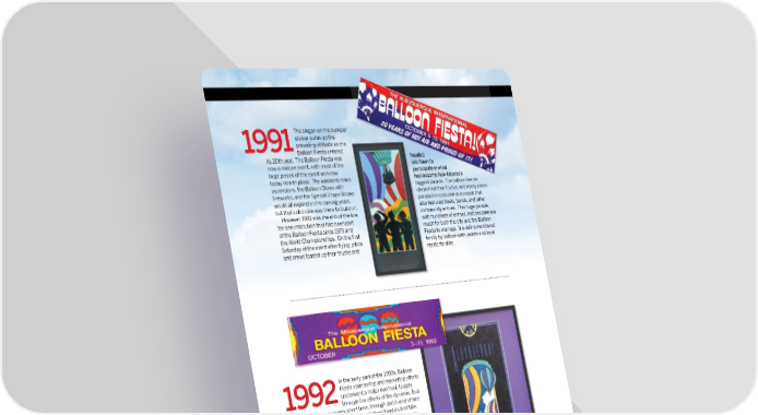 The slogan on the bumper sticker sums up the 1991prevailing attitude as the Balloon Fiesta entered its 20th year. The Balloon Fiesta was headed headed now a mature event, with most of the into town to into town to large pieces of the event we know participate in what participate in what today now in place. The weekend mass had become New Mexico’s had become New Mexico’s ascensions, the Balloon Glows with biggest parade. The balloon teams fi reworks, and the Special Shape Rodeo decorated their trucks, and many crews would all expand in the coming years, paraded in costume in an event that but that solid core was there to build on. also featured fl oats, bands, and other However, 1991 was the end of the line community entries. This huge parade, for one institution that had been part with hundreds of entries, had become too of the Balloon Fiesta since 1973 and much for both the city and the Balloon the World Championships. On the fi rst Fiesta to manage. It is still remembered Saturday of the event after fl ying, pilots fondly by balloon enthusiasts and local and crews loaded up their trucks and residents alike. In the early part of the 1990s, Balloon Fiesta sponsoring and marketing eff orts 1992underwent a major overhaul, largely through the eff orts of the dynamic Jodi Baugh. In a very short time, through Jodi’s and others’ eff orts, Kodak became the Balloon Fiesta’s fi rst title sponsor, a distinction which continued for a decade. In this pre-digital era, shutterbugs went through a lot of fi lm at the Balloon Fiesta, which to this day is considered to be the most photographed event in the world. These and other marketing eff orts began to put Balloon Fiesta on a more solid fi nancial footing. Among the new events to Balloon Fiesta in 1992 were the Manfred Radius Glider Show, the Parade of Lights, and – well, not quite a new event – the Dawn Patrol. The fi rst Dawn Patrol fl ight ever took place at Balloon Fiesta in 1978, but it did not become an offi cial part of the event until 1992. The Dawn Patrol pilots have specially-approved aircraft lights that allow them to fl y while it is still dark outside, and their fl ights are a sort of “balloon glow in the sky.” Their fellow pilots launching later in the morning watch the Dawn Patrol to get an idea of wind direction at various altitudes. OFFICIAL PROGRAM 157