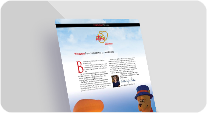 CELEBRATING 50 YEARS Welcome from the Governor of New Mexico ienvenidos and Welcome to the Land of Whether you call New Mexico home or you’re a New Enchantment! Mexican at heart, I invite you to indulge in everything There’s no better way to describe a visit that our state has to off er. Visit a new restaurant to try to New Mexico than Adventure Steeped in some red or green chile (or both!). Take a stroll down Culture – it’s what makes us New Mexico any of our trails or open spaces. Get an early jump on True. your holiday shopping by supporting our local artists B This year, we are especially grateful to celebrate and merchants. Make it an adventure by visiting some the 50th anniversary of New Mexico’s signature event truly one-of-a-kind New Mexico destinations. and the very defi nition of New Mexico True -- the Thank you for joining us and I hope Albuquerque International Balloon Fiesta. you have a memorable experience here you have a memorable experience here For 50 years, people from around the globe have in New Mexico. in New Mexico. traveled to New Mexico each October to watch the world’s largest gathering of balloonists take to the skies above Albuquerque. This year, we are happy to welcome you back with open arms and a friendly spirit. Gov. Michelle Lujan Grisham Gov. Michelle Lujan Grisham ® 16 Albuquerque International Balloon Fiesta