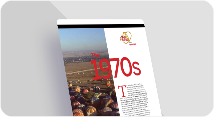 The 1970S he first balloons flew in the first Albuquerque International Balloon Fiestas® as the city and the nation transitioned from the turmoil of the 1960s and the anti-war protests of the early 1970s through Watergate and the T end of the Vietnam War. The Beatles broke up, Elvis left the building, and Saturday Night Fever set in as people danced to the new rhythms of punk and disco. Society was changing; women’s lib and gay lib began to move into the mainstream. Down in southeast Albuquerque, two young entrepreneurs, Bill Gates and Paul Allen, working with a small hardware developer called MITS, were busy creating a new company: Microsoft. Those early years, for Balloon Fiesta and ballooning in general, were years of learning and experimentation. Pilots sometimes discovered balloons’ limitations and the impact of weather the hard way. But it was also a free-spirited era when balloonists dreamed big dreams and set records, and freely welcomed wide-eyed newcomers into their ranks who became balloonists themselves, growing future Balloon Fiestas. PHO T O: BILL W AL T ON FL YNT OFFICIAL PROGRAM 33
