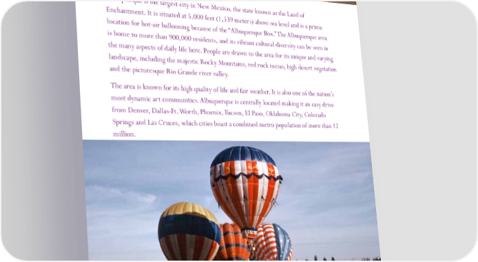 ALBUQUERQUE FACT S Albuquerque is the largest city in New Mexico, the state known as the Land of Enchantment. It is situated at 5,000 feet (1,539 meters) above sea level and is a prime location for hot-air ballooning because of the “Albuquerque Box.” The Albuquerque area is home to more than 900,000 residents, and its vibrant cultural diversity can be seen in the many aspects of daily life here. People are drawn to the area for its unique and varying landscape, including the majestic Rocky Mountains, red rock mesas, high desert vegetation and the picturesque Rio Grande river valley. The area is known for its high quality of life and fair weather. It is also one of the nation’s most dynamic art communities. Albuquerque is centrally located making it an easy drive from Denver, Dallas-Ft. Worth, Phoenix, Tucson, El Paso, Oklahoma City, Colorado Springs and Las Cruces, which cities boast a combined metro population of more than 12 million.