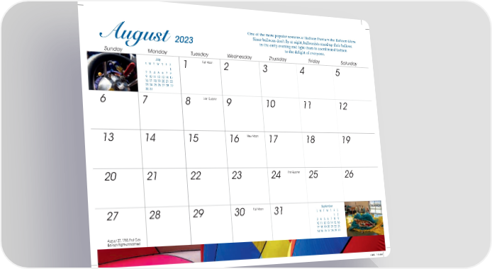 One of the more popular sessions at Balloon Fiesta is the Balloon Glow. Since balloons don’t fly at night, balloonists stand up their balloon August 2023 in the early evening and light them in coordinated fashion to the delight of everyone. Sunday Monday Tuesday Wednesday Thursday Friday Saturday July Full Moon S M T W T F S 1 2 3 4 5 1 2 3 4 5 6 7 8 9 10 11 12 13 14 15 16 17 18 19 20 21 22 23 24 25 26 27 28 29 30 31 6 7 8 Last Quarter 9 10 11 12 13 14 15 16 New Moon 17 18 19 20 21 22 23 24 First Quarter 25 26 Full Moon September 27 28 29 30 31 S M T W T F S 1 2 3 4 5 6 7 8 9 10 11 12 13 14 15 16 17 18 19 20 21 22 23 August 27, 1783, First Gas 24 25 26 27 28 29 30 Balloon flight-unmanned 244419_Grd.indd 17244419_Grd.indd 17 4/4/22 7:54 AM4/4/22 7:54 AM