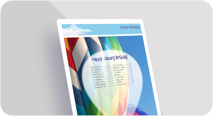 Member Birthdays Happy January Birthday! Myia Hackett ................... 5 Cadence Weiz .................19 Keith Sproul ..................... 7 Patrick M. Casieux ..........22 Kay Moore ....................... 7 Jason Buckner ................. 22 Debbie Sproul .................8 Carol Bair......................... 23 Elaine Thacher ................ 9 Bill Glen ............................ 25 John Ranson .................... 12 Lisa Schrenk ................... 25 Greg Carrasco ................14 Jordan Eakin .................... 29 Kim Snoeberger ..............16 Lee Wilson ....................... 29 Raymond E. Bair .............18 Charles Schick ................31 20 aaaa cloudbouncer JANUARY 2023