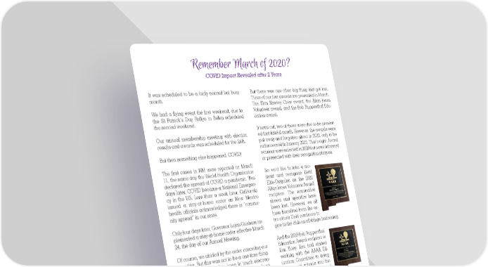 Remember March of 2020? COVID Impact Revealed after 2 Years It was scheduled to be a fairly normal but busy But there was one other big thing that got lost. month. Three of our four awards are presented in March. The Slim Rawley Crew award, the Allan Jones We had a flying event the first weekend, due to Volunteer award, and the Bob Ruppenthal Edu- the St Patrick’s Day Rallye in Belen scheduled cation award. the second weekend. It turns out, two of those were due to be present- Our annual membership meeting with election ed that fateful month. However, the awards were results and awards was scheduled for the 24th. put away and forgotten about in 2020, only to be rediscovered in January 2023. That’s right. Award But then something else happened. COVID! winners were selected in 2020 but never informed or presented with their recognition plaques. The first cases in NM were reported on March 11, the same day the World Health Organization So we’d like to take a mo- declared the spread of COVID a pandemic. Two ment and recognize Debi days later, COVID became a National Emergen- Ellis-Ostgulen as the 2020 cy in the US. Less than a week later, California Allan Jones Volunteer Award issued a stay-at-home order as New Mexico recipient. The nomination health officials acknowledged there is “commu- sheets and specifics have nity spread” in our state. been lost. However, we all have benefited from the ex- Only four days later, Governor Lujan Grisham im- tra efforts Debi continues to plemented a stay-at-home order effective March give to the club on all things ballooning. 24, the day of our Annual Meeting. And the 2020 Bob Ruppenthal Of course, we abided by the order canceling our Education Award recipient is meeting. But this was not to be a one-time thing. Ken Tuley. Ken had started While we scrambled to keep in touch electron- working with the AAAA Ed- ically and put in place the technology to do so, ucation Committee to bring there was a change of leadership at AAAA. Jenni- the ground schools into the fer Garcia had just been elected President. Peter current century with updated Cuneo joined the board as Vice-President to fill presentations, video record- the slot vacated by Jennifer. Sue Palmer took over ings and more. Little did we know at the time, that Crew-Development, Doug Gantt Flying Events we would all be taking a much larger leap into and Chani Kaibetoney Ways and Means. And technology in the months and years to come. with everything in disarray, some things got lost in the shuffle. Debi and Ken now have their plaques. Congrat- ulations and thank you for your contributions to Take the Cloudbouncer as an example. It wasn’t AAAA and the Ballooning community. published in March, April, or May of 2020. There was a catch-up edition published in June with minutes and committee reports. aaaa cloudbouncer JANUARY 2023 7