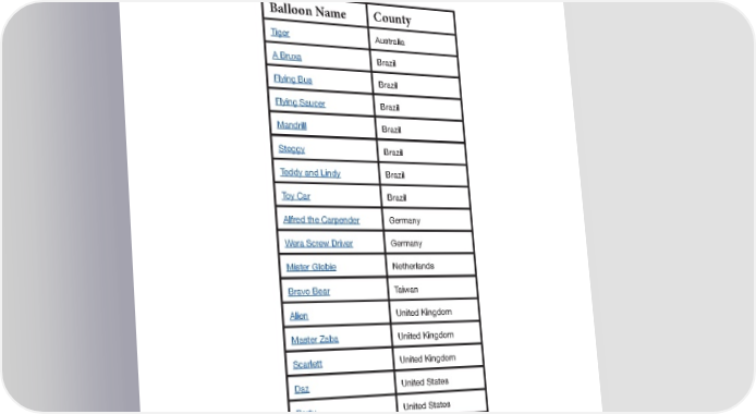 44 Albuquerque International Balloon Fiesta 2016 Media Guide 2022 Media Guide 2022 NEWS RELEASE SUMMARIES ALBUQUERQUE INTERNATIONAL BALLOON FIESTA ANNOUNCES 2022 NEW SPECIAL SHAPES 50th Event Includes 19 New Special Shape Hot Air Balloons Albuquerque, NM - The 50th Albuquerque International Balloon Fiesta will host international special shape balloon teams as a part of the world’s premier balloon event, October 1-9. This year’s event will include 118 special shape balloons representing 11 countries; 19 of those shapes will make their first Balloon Fiesta appearance. Special shape hot air balloons (and home country) making their inaugural appearance at Balloon Fiesta include: Balloon Name County Tiger Australia A Bruxa Brazil Flying Bus Brazil Flying Saucer Brazil Mandrill Brazil Steggy Brazil Teddy and Lindy Brazil Toy Car Brazil Alfred the Carpender Germany Wera Screw Driver Germany Mister Globie Netherlands Bravo Bear Taiwan Alien United Kingdom Master Zaba United Kingdom Scarlett United Kingdom Daz United States Party United States Squeak United States Xfinity United States In addition to these new balloons, many Balloon Fiesta Special Shape favorites will also be making a return. These include Airabelle, The Creamland Cow of Canada; Darth Vader of Belgium; and Pigasus of the United States. Here is a full list of returning special shape balloons: https://balloonfiesta.com/Post/2022- Special-Shapes [CONTINUED]