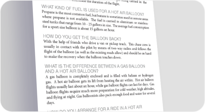 38 Albuquerque International Balloon Fiesta 2022 Media Guide FREQUENTLY ASKED QUESTIONS WHEN IS THE BEST TIME TO FLY A HOT AIR BALLOON? Conditions are usually the best just after sunrise and one or two hours before sunset. This is the time of day when winds are calmest and the air most stable. HOW HIGH DO HOT AIR BALLOONS FLY? Most balloon flights occur between 500 and 2,000 feet above the ground. But balloons can fly at treetop level or go much higher. The world record for altitude in a hot air balloon is 65,000 feet. HOW LONG CAN A HOT AIR BALLOON STAY UP? It depends. Normally, the balloon carries enough fuel to remain aloft for two hours, but factors like outside air temperature, weight being carried in the basket, and weather determine the duration of the flight. WHAT KIND OF FUEL IS USED FOR A HOT AIR BALLOON? Propane is the most common fuel, but butane is sometimes used in remote areas where propane is not available. The fuel is carried in aluminum or stainless- steel tanks that range from 10 – 25 gallons in size. The average fuel consumption for a sport size balloon is about 15 gallons an hour. HOW DO YOU GET THE BALLOON BACK? With the help of friends who drive a van or pickup truck. This chase crew is usually in contact with the pilot by means of two-way radios and follows the flight of the balloon (as well as the existing roads allow) and should be on hand to make the recovery when the balloon touches down. WHAT IS THE DIFFERENCE BETWEEN A GAS BALLOON AND A HOT AIR BALLOON? A gas balloon is completely enclosed and is filled with helium or hydrogen gas. A hot air balloon gets its lift from heating the air within. Hot air balloon flights usually last about an hour, while gas balloon flights can last for days. Gas balloon flights require much more preparation for cold weather, high altitudes, and flying at night. Gas balloonists also pack enough food and water for several days. HOW DO YOU ARRANGE FOR A RIDE IN A HOT AIR BALLOON? Reservations for a hot air balloon ride can be made with Rainbow Ryders Inc., the official ride concessionaire for the Albuquerque International Balloon Fiesta. The Rainbow Ryders tent is located near the North end of the field and near Gate 9. For reservations, call: 1-800-725-2477.
